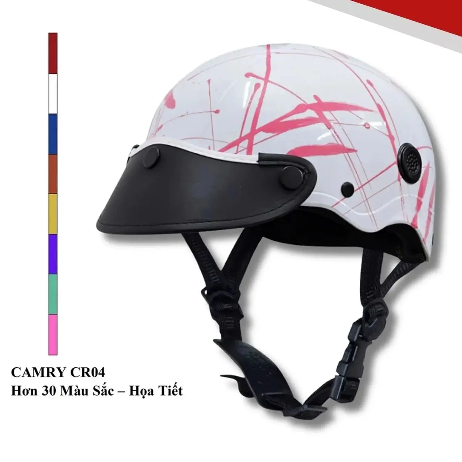 Nón bảo hiểm nửa đầu Camry, thời trang cao cấp, trẻ trung, nón có lỗ thông gió, lưỡi trai. Được thiết kế có lỗ thông gió, thoáng mát, đem lại cảm giác thoải mái, màu sắc đa dạng, mang lại sự trẻ trung, năng động cho người đội.