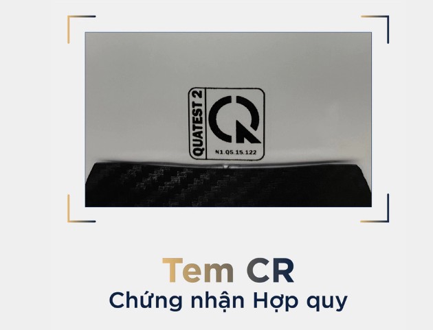 Đây là loại tem quan trọng nhất mà bất kỳ chiếc mũ bảo hiểm nào lưu hành tại Việt Nam cũng phải có. Tem CR là tem chứng nhận hợp quy do Tổng cục Tiêu chuẩn Đo lường Chất lượng thuộc Bộ Khoa học & Công nghệ cấp, xác nhận sản phẩm đã đạt QCVN 2:2021/BKHCN, quy chuẩn kỹ thuật quốc gia mới nhất hiện hành.